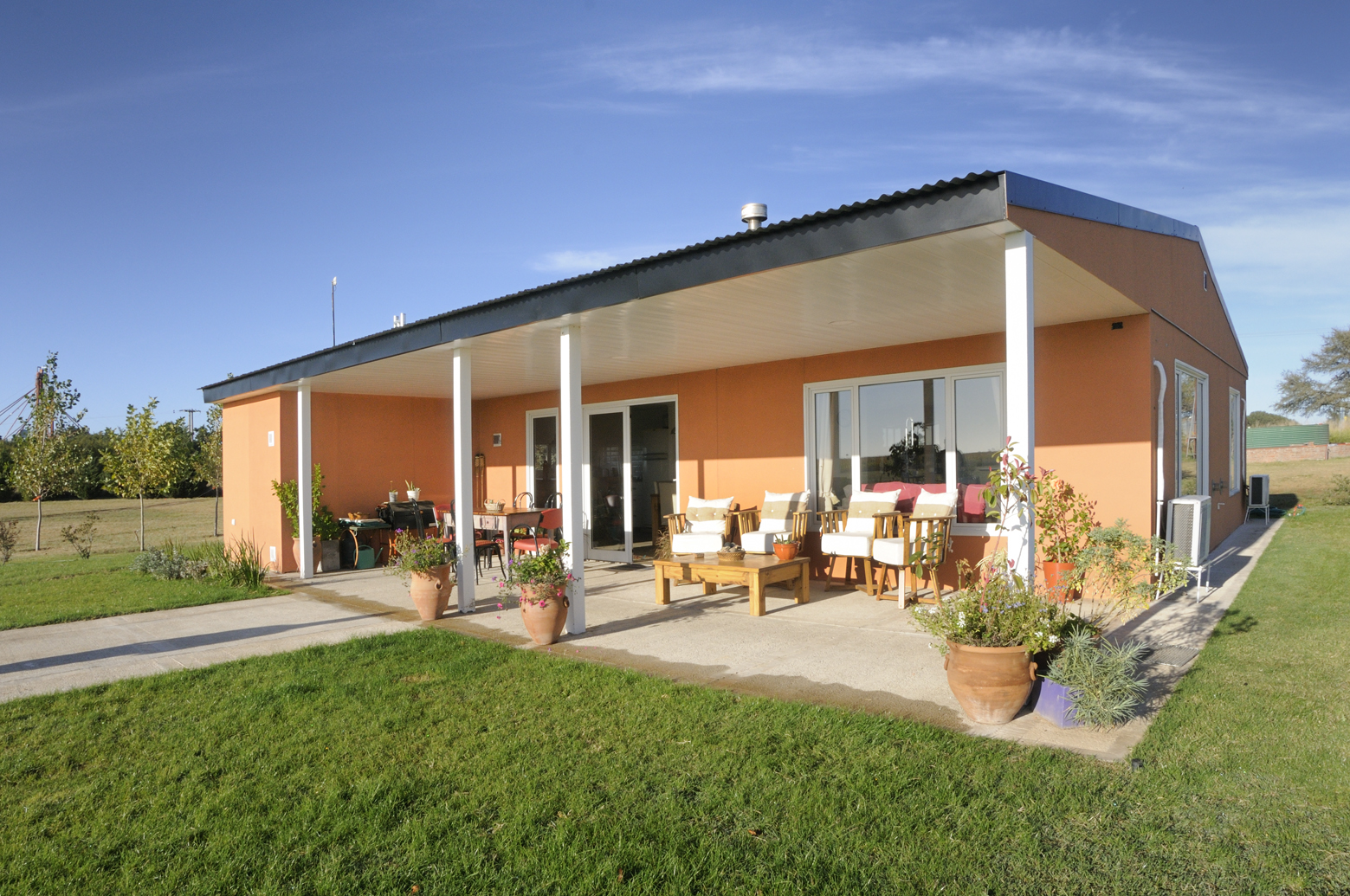 Nuestros módulos están desarrollados con sistema Steel Frame, una solución moderna, eficiente y de rápida ejecución. Cada unidad cuenta con estructura galvanizada de alta resistencia, terminación exterior con panel chapa/chapa con aislación de poliuretano para un excelente confort térmico y acústico, y terminaciones interiores listas para habitar.